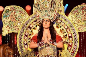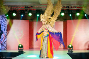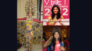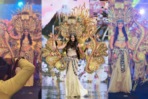 Miss Tourism Queen International 2011 – Pushpika De Silva (China) A vibrant, ornate design celebrating Sri Lanka’s coastal heritage — featuring marine-inspired beadwork, flowing drapes, and tropical color palettes that