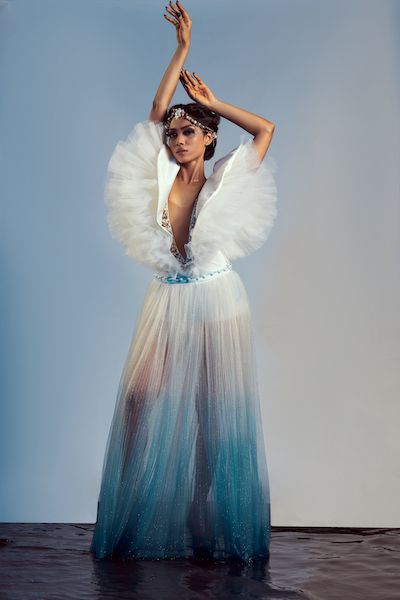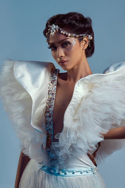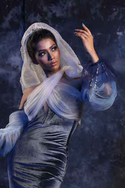 Featuring actress Harini Kawyanjani in Evergrace, the Autumn/Winter 2024 couture collection by Venuka Wickramaarachchi, which was showcased at the AQUA Fashion Show in Milan (2023) — hosted by the prestigious Ferrari Fashion School.