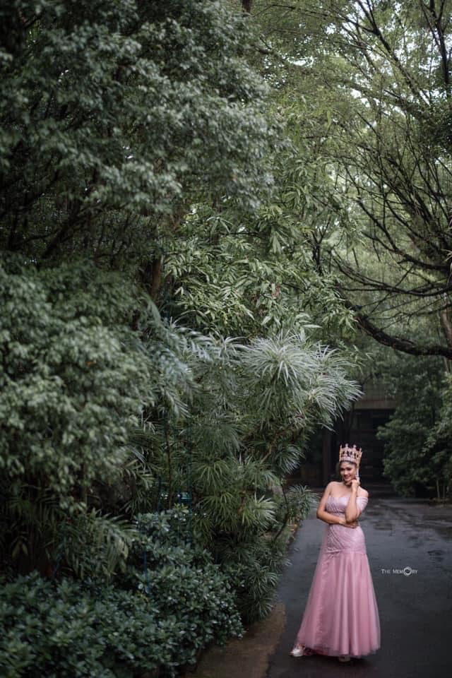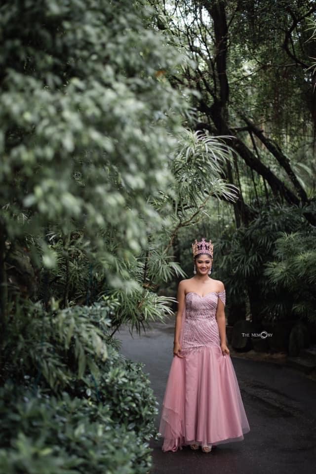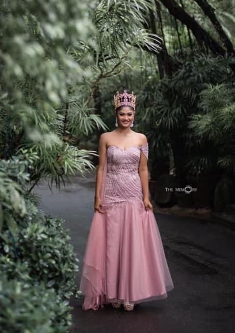 For her 2018 Mrs. World appearance, Venuka created a romantic rose-blush gown crafted from layers of soft tulle and satin, delicately structured to accentuate elegance and grace. The design captured femininity, confidence, and regal poise — hallmarks of Venuka’s couture aesthetic.